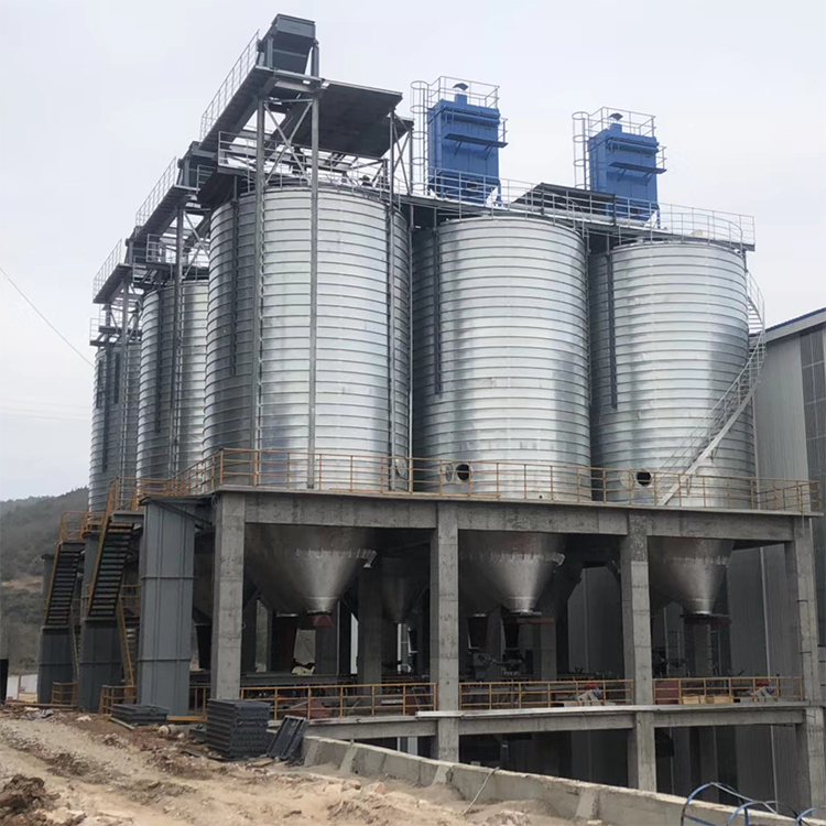 接收与清理设置在筒仓中央该形式筒仓一般采用对称排列,提升机井架固定,经过提升后的物料通过仓顶溜管进人筒仓。这种形式省去了仓顶输送设备和上通廊,从而节省了建造费用,缩短了建造工期。对于贮存时间要求较长的大型粮库,则应根据物料的流向、场地情况、工艺要求等合理地配置投料口、工作塔、烘干塔及海西钢板仓的位置。国华钢板仓介绍了这几种常见的进料形式,实际中可将各种形式相互组合,相互渗透,根据实际情况合理搭配,灵活选用。